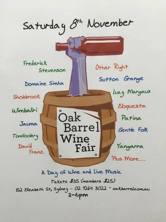 It's happening - the annual Sydney's Oak Barrel Wine Fair! We will be pouring our 2014 Spring Release wines there, along with some of the top Australian wine producers. If you're in Sydney on 8th November, 2-6PM, come and taste some, gonna be delicious!